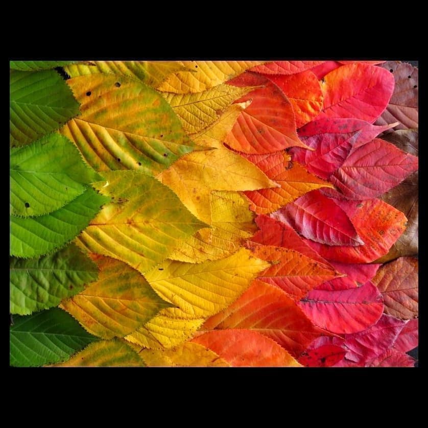 葉っぱに含まれる成分|①緑:クロロフィル②黄:カロチノイド③赤:アントシアニン