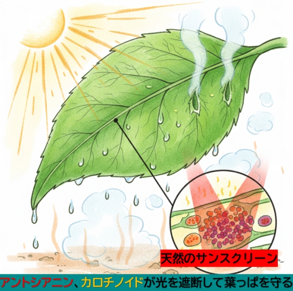 • 役割:紫外線から葉を守る「日傘」の役割
