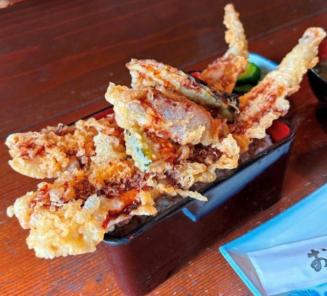 🍽 鳥きんの穴子天丼 温泉の後は、地元で人気の「鳥きん」で房総名物の穴子天丼を堪能。サクサクの衣に包まれたふっくら穴子は、房総の海の恵みを存分に味わえる一品です。